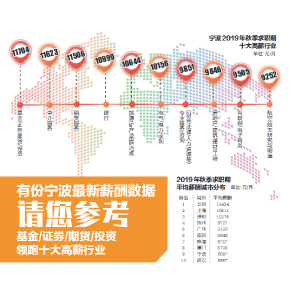 10月22日消息,智聯(lián)招聘發(fā)布的《2019年秋季寧波雇主需求與白領(lǐng)人才供給報(bào)告》顯示,2019年秋季求職期寧波人才供需競(jìng)爭(zhēng)指數(shù)為10.3,平均薪酬8697元/月,全國(guó)排第九?;?證券的平均月薪最高,達(dá)11704元/月。