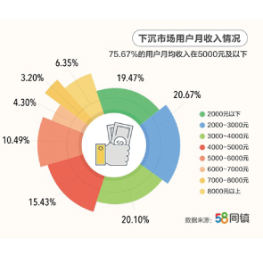 9月18日消息,58同鎮(zhèn)發(fā)布的《2019下沉市場(chǎng)用戶調(diào)研報(bào)告》顯示,下沉市場(chǎng)用戶中75.67%月均收入5000元以下,58.23%有乘用車,41.04%有房無貸,其住房壓力小于一二線城市居民。下沉市場(chǎng)用戶青睞3000元及以下價(jià)位手機(jī),另外線下消費(fèi)愛“下館子”。