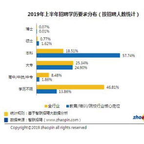 9月9日消息,智聯(lián)招聘發(fā)布的《教育培訓(xùn)產(chǎn)業(yè)發(fā)展及人才供需報告》顯示,教育/培訓(xùn)/院校行業(yè)核心人才約六成為本科學(xué)歷,英語、會計專業(yè)求職者居多。2019上半年教育培訓(xùn)業(yè)平均招聘薪酬7926元/月,全行業(yè)平均水平8452元/月。