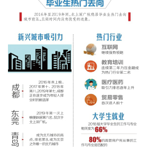 9月9日消息,MOMO聯(lián)合京東發(fā)布的 《2019高校畢業(yè)生就業(yè)趨勢報告》顯示,北上深廣杭穩(wěn)居畢業(yè)生熱門去向城市前五,成都、東莞成吸納人才新興城市,青島是北方城市最大亮點,互聯(lián)網(wǎng)業(yè)競爭最激烈,教育培訓(xùn)業(yè)力壓金融成第二名。