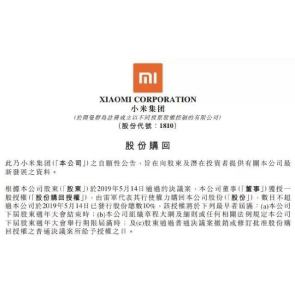 9月6日消息,小米集團(tuán)宣布,董事會于2019年9月4日議決根據(jù)股份獎勵計劃,共獎勵457名選定參與者3499.1749萬股股票,獎勵股份的歸屬期自2019年9月4日起介乎一日至五年。股票共價值3.03億港元,人均約66.23萬港元。