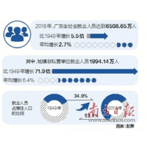 9月5日消息,廣東省統(tǒng)計局稱,70年來廣東全社會就業(yè)人員增長5.5倍,年均增長2.7%,其中城鎮(zhèn)非私營單位就業(yè)人員增長71.9倍。2018年廣東城鎮(zhèn)非私營單位就業(yè)人員年平均工資比1952年增長228.0倍,年均名義增長達(dá)8.6%。