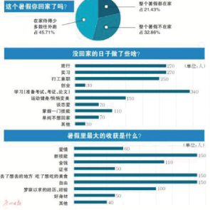 9月2日消息,廣州日報發(fā)布的調(diào)查顯示,2019年暑假,僅兩成多的廣州大學(xué)生暑假在家里過,而超三成的學(xué)生沒有回家,另外有接近一半的學(xué)生在家里待了一段時間,其余時間都在外面度過。此外,超六成大學(xué)生認為自己較好或很好利用了暑假時間。