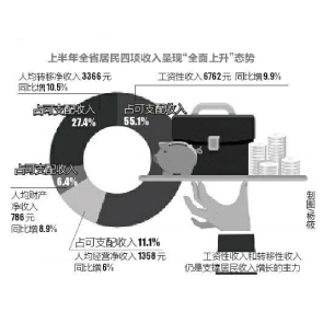 8月12日消息,國(guó)家統(tǒng)計(jì)局陜西調(diào)查總隊(duì)發(fā)布的的調(diào)查顯示,2019上半年,陜西全省居民人均可支配收入12272元,同比增長(zhǎng)9.6%,增速列全國(guó)第8位,較一季度后移1位。全體居民收入水平在全國(guó)31個(gè)省份中居第18位。