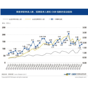 8月6日消息,中國(guó)人民大學(xué)中國(guó)就業(yè)研究所與智聯(lián)招聘聯(lián)合推出CIER顯示,2019年二季度CIER指數(shù)為1.89。本季度招聘需求人數(shù)增15.7%,大于求職申請(qǐng)人數(shù)的增幅(2.7%),CIER指數(shù)呈季節(jié)性微升,由1.68升至1.89。