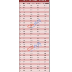 7月22日消息,國家統(tǒng)計局公布的數(shù)據(jù)顯示,31省份中共有9個省份的居民人均可支配收入超過全國平均水平。其中,有7省份居民上半年“會賺也會花”。此外,上海以35294元奪得全國收入榜第一名,北京緊隨其后。