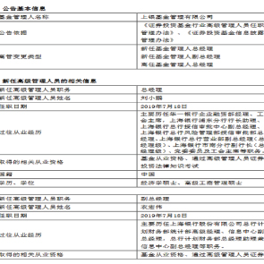 7月22日消息,上銀基金公告稱,李永飛因個(gè)人原因離任總經(jīng)理,新任劉小鵬為公司總經(jīng)理,新任衣宏偉為副總經(jīng)理。劉小鵬歷任華一銀行企業(yè)融資部經(jīng)理、工會(huì)主席,上海銀行浦東分行行長(zhǎng)助理、上海銀行市南分行副行長(zhǎng)等職。