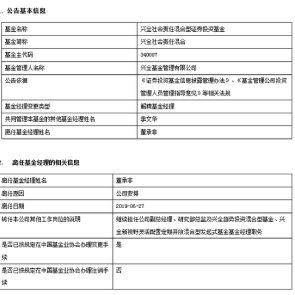 7月1日消息,興全社會(huì)責(zé)任混合型證券投資基金公告稱,董承非因工作安排離任該產(chǎn)品基金經(jīng)理。離任該產(chǎn)品基金經(jīng)理后,仍繼續(xù)任公司副總經(jīng)理、研究部總監(jiān)及興全趨勢投資混合型基金經(jīng)理職務(wù)。該產(chǎn)品由季文華獨(dú)自管理。