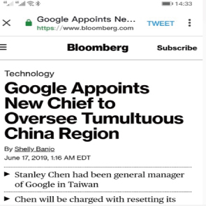 6月18日消息,Google方面確認,任命陳俊廷為Google大中華區(qū)總裁,負責該地區(qū)的銷售與運營,他將于上海赴任。Google大中華區(qū)總裁此前由石博盟擔任。過去8年陳俊廷擔任Google中國臺灣總經理,此前曾在蘋果、英特爾、愛立信等公司工作。