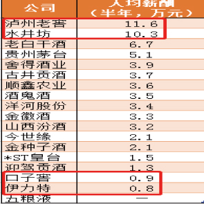 9月6日消息,Wind提供的數(shù)據(jù),18家白酒A股上市公司2018年披露的中報(bào)來看,瀘州老窖和水井坊上半年人均薪水超10萬元,處于第一梯隊(duì)。人均工資最低的白酒企業(yè)是口子窖和伊力特,2018上半年人均薪水僅不到1萬元最摳門。