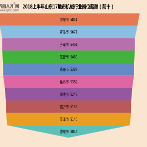 8月8日消息,齊魯人才網(wǎng)發(fā)布的數(shù)據(jù)顯示,截至2018上半年,山東省機械行業(yè)崗位薪酬5026元,低于省平均薪酬水平近300元。從17地市來看,濱州以5851元排榜首,濱州、青島、濟南、東營、威海、濰坊六市超此水平。