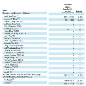 7月30日消息,阿里巴巴向SEC提交的報告披露,阿里最新股權(quán)結(jié)構(gòu),阿里高管和董事合計持股降至9.5%。截至2018年7月18日阿里董事局主席馬云持股6.4%,執(zhí)行副主席蔡崇信持股2.3%,高管和董事合計持股9.5%,都有所下降。