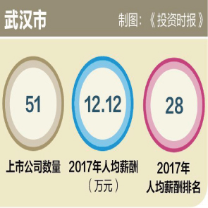 7月10日消息,Wind數(shù)據(jù)顯示,2017年,51家武漢上市公司為其共計(jì)26萬余名員工人均支付薪酬為12.12萬元,較2016年的11.19萬元增長8.28%。而2015年,武漢上市公司人均薪酬為10.30萬元,2016年較2015年亦同比上漲8.46%。