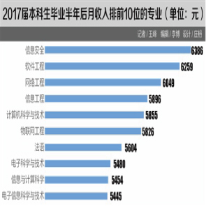 6月19日消息,MYCOS發(fā)布的《2018中國大學(xué)生就業(yè)報(bào)告》顯示,2017屆本科畢業(yè)生半年后月收入最高的專業(yè)是信息安全,平均月薪6386元,緊隨其后的是軟件工程、網(wǎng)絡(luò)工程、信息工程、物聯(lián)網(wǎng)工程等專業(yè)。