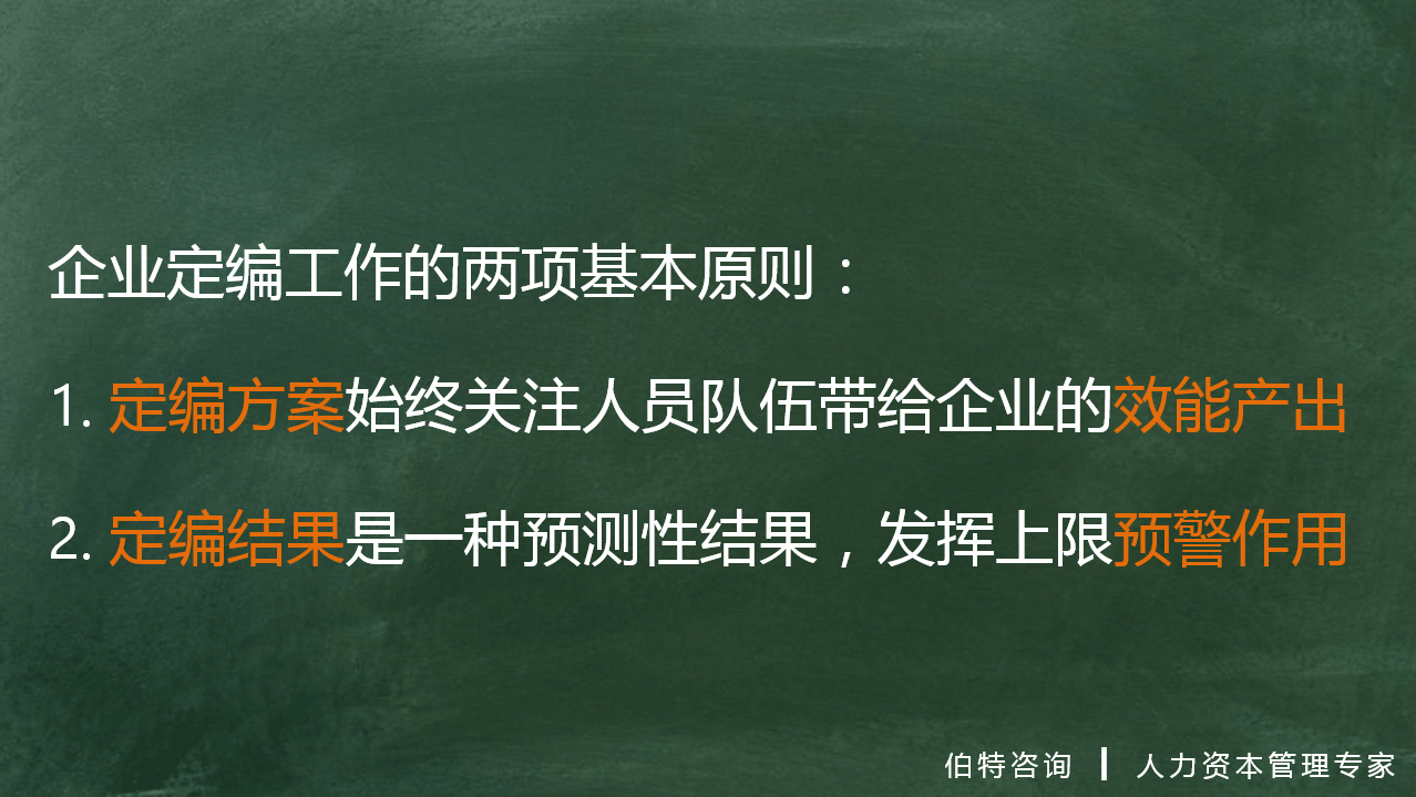 正是由于企業(yè)對于定編管理存在“總量規(guī)劃、方法簡單、要素穩(wěn)定”等要求,故伯特咨詢基于眾多項目、與企業(yè)共同實踐的基礎上,提出企業(yè)定編工作的兩項基本原則: