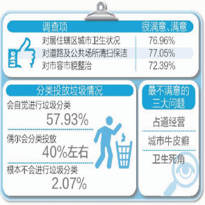 3月15日消息,廈門市首次市容環(huán)境衛(wèi)生公眾滿意度問卷調(diào)查結(jié)果公布,近八成受訪者對城市衛(wèi)生狀況表示“很滿意”,近九成受訪者認為廈門的環(huán)境狀況與兩年前相比有好轉(zhuǎn)。此外,會自覺進行垃圾分類的受訪者達57.93%。