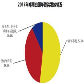 1月26日消息,智聯(lián)招聘發(fā)布的2017鄭州白領(lǐng)年終獎?wù){(diào)查顯示,鄭州年終獎均值達(dá)6876元,排名20。鄭州白領(lǐng)中有52.5%表示能夠拿到年終獎,比2016年35.8%有較大提升,但低于2017年全國平均水平66%。另外,有37.3%的鄭州白領(lǐng)表示拿不到年終獎。