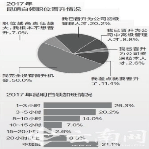 1月18日消息, 智聯(lián)招聘發(fā)布的2017年白領(lǐng)滿意度指數(shù)調(diào)查顯示,昆明白領(lǐng)工作滿意度和生活滿意度指數(shù)分別為2.55和2.30,低于全國(guó)平均水平。2017年昆明白領(lǐng)職位晉升滿意度指數(shù)為2.03,成工作滿意度的5大方面中最不滿意的一項(xiàng)。