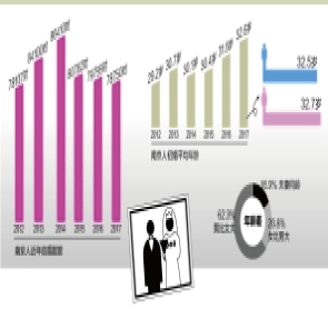 1月2日消息,南京市民政局稱,截至2017年12月29日,南京2017年共有78750對新人領(lǐng)證,也有54303對夫妻分手。其中,南京人結(jié)婚的年齡又晚了,平均要到32.6歲才愿意走進(jìn)婚姻的殿堂。即目前不少85后還在享受戀愛或處在單身中。