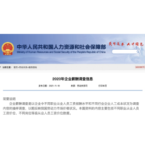 11月24日消息,人社部發(fā)布2020年企業(yè)薪酬調(diào)查信息顯示,從工資價(jià)位高位數(shù)來看,企事業(yè)單位負(fù)責(zé)人排第一,年工資為26.19萬元,金融服務(wù)人員排第二年工資為23.9萬元,經(jīng)濟(jì)和金融專業(yè)人員排第三,年工資17.42萬元。