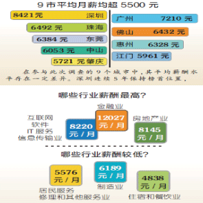 11月16日消息,中國(guó)南方人才市場(chǎng)發(fā)布的2017年《南方人才年度廣東地區(qū)薪酬調(diào)查報(bào)告》顯示,地區(qū)平均月薪上,深圳以8421元實(shí)現(xiàn)5年的連續(xù)領(lǐng)跑,廣州以7210元位第二。此外,研究生學(xué)歷職工月薪降幅達(dá)14.10%。