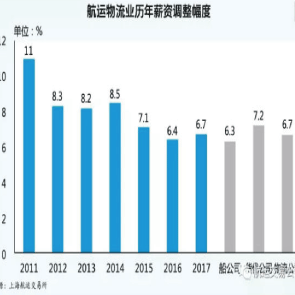 11月3日消息,上海航運交易所及CDC聯(lián)合發(fā)布的《2017上海航運物流業(yè)薪酬福利調(diào)研報告》顯示,2017年度航運物流行業(yè)平均薪資調(diào)整幅度約為6.7%,比2016年提高0.3個百分點,顯示整體市場回暖態(tài)勢。但6.7%的薪資調(diào)整服務仍為七年來的第二低。