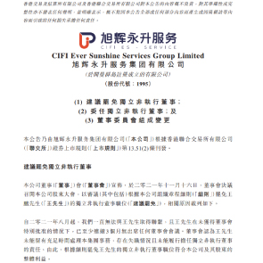 11月22日消息,旭輝永升服務(wù)稱,擬罷免王鵬的獨(dú)立非執(zhí)行董事職位,委任俞鐵成為獨(dú)立非執(zhí)行董事,王先生不再為薪酬委員會(huì)主席及本公司提名委員會(huì)成員,俞先生已獲委任為薪酬委員會(huì)主席及本公司提名委員會(huì)成員。