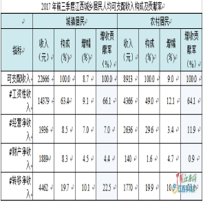 10月24日消息,國家統(tǒng)計(jì)局江西調(diào)查總隊(duì)稱,2017前三季度城鄉(xiāng)居民收入繼續(xù)穩(wěn)定增長,江西居民人均可支配收入15577元,比上年同期增9.6%,增幅比全國平均水平高0.5個(gè)百分點(diǎn),居全國第5,扣除價(jià)格因素實(shí)際增長8.0%。