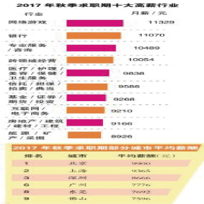 10月20日消息,智聯(lián)招聘發(fā)布的《2017年秋季東莞雇主需求與白領(lǐng)人才供給報(bào)告》顯示,東莞2017秋各個(gè)職位的整體平均薪酬水平略有上升,其中薪酬最高是網(wǎng)絡(luò)游戲行業(yè),平均月薪超1.1萬(wàn)元,其次為銀行,平均月薪約1萬(wàn)元。
