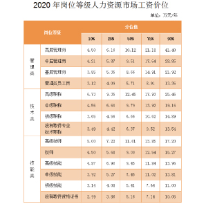 11月22日消息,四川省人社廳發(fā)布《四川省2020年人力資源市場工資價(jià)位和行業(yè)人工成本信息》顯示,對(duì)6個(gè)大類、62個(gè)中類、262個(gè)小類的職業(yè)工資指導(dǎo)價(jià)位,四川省企業(yè)2020年工資報(bào)酬中位數(shù)為5.47萬元,與2020年相比增長6.74%。