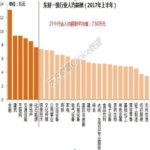 9月8日消息,東方財富Choice數(shù)據(jù)顯示,從行業(yè)來看,金融行業(yè)繼續(xù)領(lǐng)跑,且為2017上半年唯一人均薪酬超過10萬元行業(yè)。建筑業(yè)及互聯(lián)網(wǎng)業(yè)列前三,人均薪酬均在9.30萬元。其后交通運輸及房地產(chǎn)業(yè),人均薪酬均在8萬元以上。
