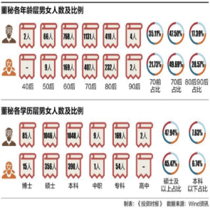7月13日消息,標(biāo)點(diǎn)財(cái)經(jīng)研究院發(fā)布的《2017中國上市公司董秘全樣本報(bào)告》顯示,男性仍是董秘主力軍,有2382人占74.39%,女性820人占25.61%。女性董秘年輕,學(xué)歷水平也均衡。女性和男性董秘平均薪酬分別48.06萬和50.48萬元。