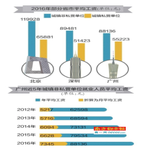 7月13日消息,廣州市統(tǒng)計(jì)局發(fā)布的數(shù)據(jù)顯示,2016年廣州城鎮(zhèn)非私營單位的年平均工資約為8.8萬元,這也是月平均工資首超7000元。同比名義增長10 .8%,實(shí)際增長7.9%。城鎮(zhèn)私營單位就業(yè)人員年平均工資為5 .5萬元。