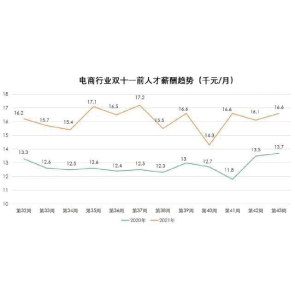 11月9日消息,Lagou發(fā)布的報(bào)告顯示,2021年雙十一前夕電商行業(yè)人才需求不升反降,MCN兼職職位增長(zhǎng)437%,內(nèi)容社區(qū)高薪挖人,商業(yè)化趨勢(shì)顯著。2021年雙十一前12周,電商行業(yè)平均薪資16150元,較2020年12741元上漲27%。
