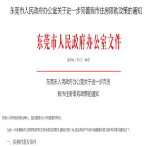 4月13日消息,東莞市政府辦公室發(fā)布的文件顯示,本市戶籍限購2套新建商品房。非本市戶籍購買首套房需繳納1年社保和個稅,買第二套新建商品住房需繳納2年社?;騻€稅。非本市戶籍買首套新建住房需繳納半年社?;騻€稅。