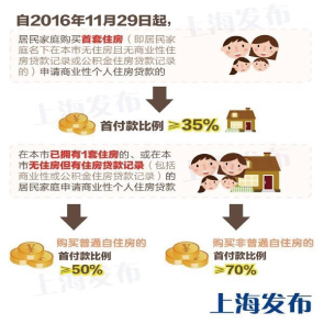 11月29日消息,上海市住建委稱,自即日起,居民家庭購買首套住房申請商業(yè)貸款的,首付款比例不低于35%。在上海市已擁有1套住房的、或無住房但有住房貸款記錄的居民家庭申請商業(yè)貸款,首付款比例不低于50%,購買非普通自住房的不低于70%。