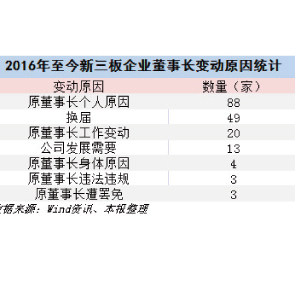 11月8日消息,據(jù)壹資本君統(tǒng)計(jì),截至2016年11月1日,新三板掛牌企業(yè)已達(dá)9341家。在2016年過去的10個月中,共180家新三板公司發(fā)布董事長變動公告。其中49家公司是因換屆重新選舉任命董事長,辭職理由為個人原因的公司達(dá)88家。
