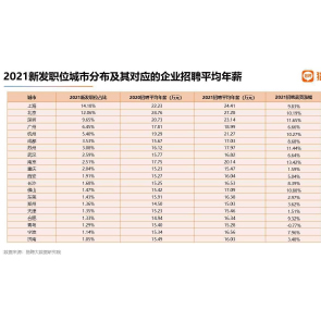 1月18日消息,LIEPIN發(fā)布的《2021年中高端人才就業(yè)趨勢數(shù)據(jù)》顯示,2021年新發(fā)職位分布最多的城市,上海、北京位居前二,占比分別為14.18%、12.06%。薪資排前的是北京、上海、深圳,分別為27.28萬元、24.41萬、23.14萬。