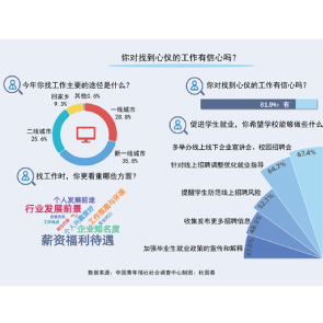 1月17日消息,中國青年報發(fā)布的調查顯示,應屆生找工作薪資福利待遇位列第一,獲選率為70.0%。新一線城市是受訪應屆生畢業(yè)后最想去的城市,僅9.3%的受訪應屆生想回家鄉(xiāng)。81.9%受訪應屆生對找到心儀的工作有信心。
