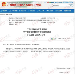 1月21日消息,廣西壯族自治區(qū)人民政府網(wǎng)站公布了最新的最低工資標(biāo)準(zhǔn),其中,南寧最低工資標(biāo)準(zhǔn)1810元/月,2020年3月1日起執(zhí)行。比2019年的1680元/月,提高了130元/月。小時最低工資標(biāo)準(zhǔn)相應(yīng)增加至17.5元/小時。