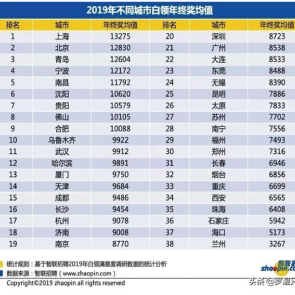 1月19日消息,智聯(lián)招聘發(fā)布的調(diào)查顯示,深圳白領(lǐng)年終獎(jiǎng)排全國(guó)第20,房?jī)r(jià)卻全國(guó)第一,全年努力到手的年終獎(jiǎng)僅能買(mǎi)0.13平米房產(chǎn)。比較而言,一線城市中廣州年終獎(jiǎng)最低,8358元,深圳倒數(shù)第二,8723元,不到上海北京的70%。