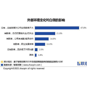 1月13日消息,智聯(lián)招聘發(fā)布2021年白領(lǐng)滿意度指數(shù)調(diào)研顯示,近30%白領(lǐng)薪酬原地踏步,超五成互聯(lián)網(wǎng)人漲薪,反壟斷、雙減等外部環(huán)境變化對(duì)近半數(shù)白領(lǐng)產(chǎn)生影響。白領(lǐng)對(duì)薪酬滿意度最低,滿意度指數(shù)僅2.21。