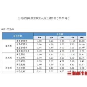12月29日消息,湖南省人社廳稱(chēng),對(duì)全省14個(gè)市18個(gè)行業(yè)門(mén)類(lèi)近萬(wàn)戶(hù)企業(yè)進(jìn)行薪酬調(diào)查基礎(chǔ)上,首次發(fā)布2020年人力資源市場(chǎng)工資價(jià)位。本次發(fā)布勞動(dòng)力市場(chǎng)工資價(jià)位包括54個(gè)不同職業(yè)中類(lèi)從業(yè)人員工資價(jià)位、不同崗位等級(jí)從業(yè)人員工資價(jià)位數(shù)據(jù)。