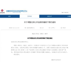 12月24日消息,安徽省省直住房公積金管理分中心稱,按《安徽省省直住房公積金歸集管理辦法》在崗職工住房公積金基數(shù)不得低于當(dāng)?shù)刈畹凸べY標(biāo)準(zhǔn)規(guī)定,現(xiàn)將省直住房公積金繳存工資基數(shù)下限相應(yīng)調(diào)整為1650元,自2021年12月3日起執(zhí)行。